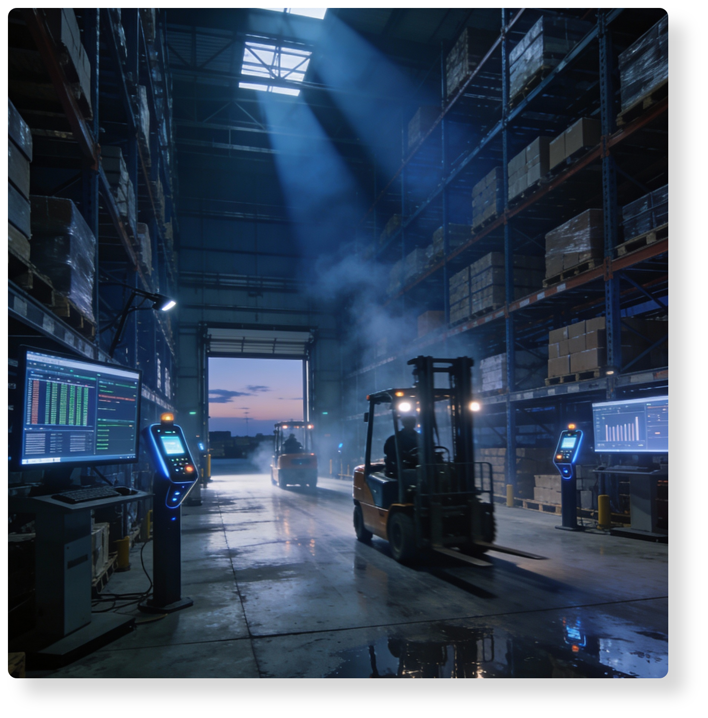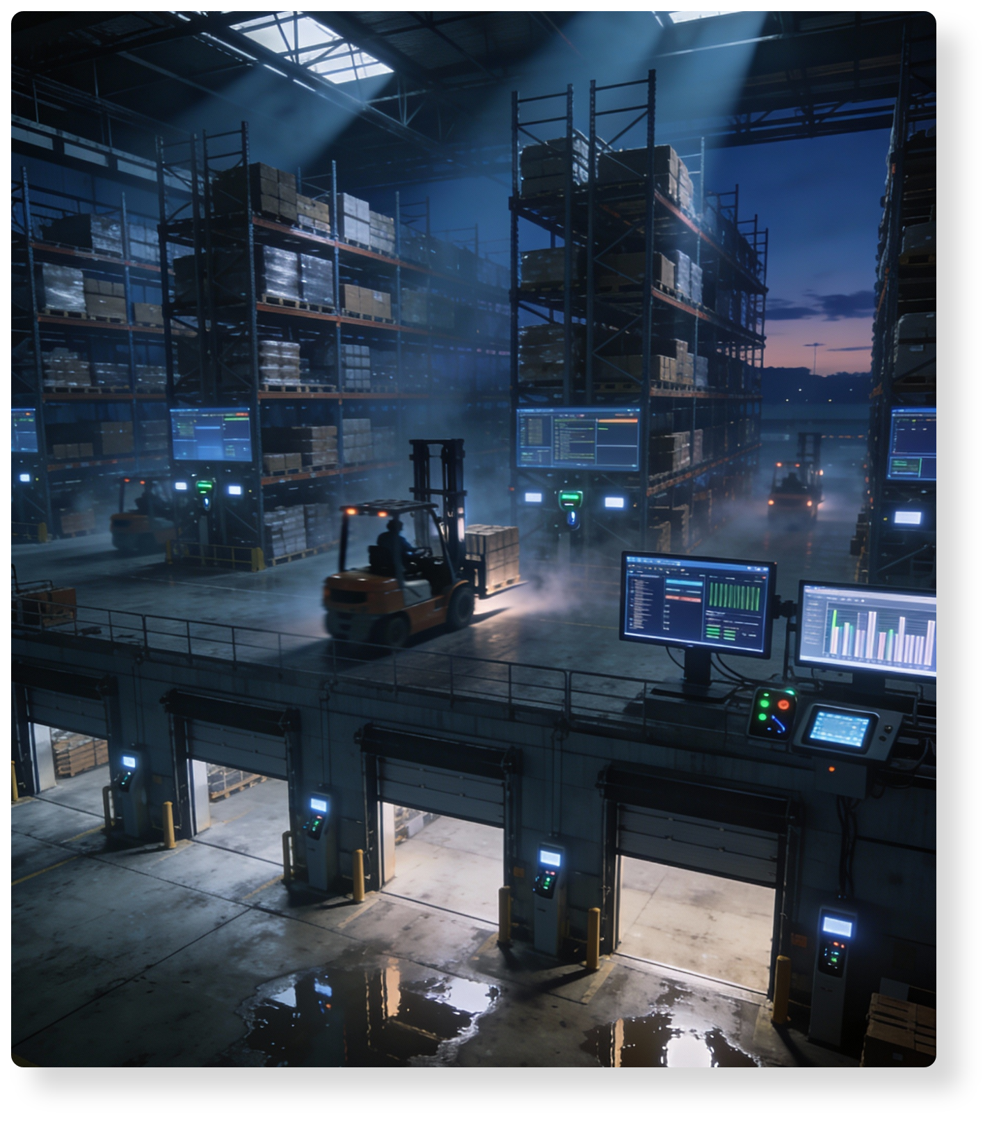 Gelişmiş depo yönetim yazılımımız sayesinde tüm envanteriniz gerçek zamanlı olarak takip edilir. Müşteri portalı ve raporlama sistemleri ile stok durumuna anlık erişim sağlanır, operasyon performansı ölçümlenir ve süreçler sürekli iyileştirilir. Depolama hizmetlerimiz, lojistik zincirinizin verimliliğini artırırken maliyetlerin düşürülmesine de katkı sağlar.